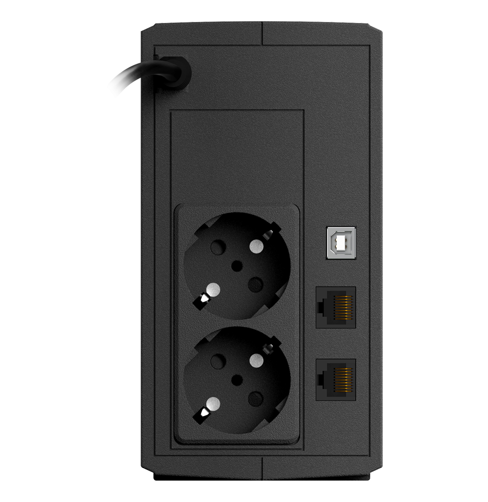 Doté de la technologie Line-Interactive, il ajuste automatiquement la tension pour protéger vos appareils tout en réduisant les besoins en énergie. Il est équipé de deux prises FR (type Schuko), parfaites pour brancher plusieurs dispositifs simultanément. Son port USB permet de le connecter à un PC pour un suivi et une gestion simplifiés via un logiciel dédié, offrant des notifications en temps réel sur l’état de la batterie et les événements électriques.