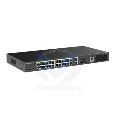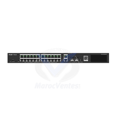 Reyee Switch PoE Cloud Administrable L2 - 24 ports PoE 802.3af/at + 2 SFP - 24 RJ45 10/100/1000Mbps + 2 SFP 10/100/1000 - 30W par port 802.3af/at / Maximum 370W - VLAN/Port Isolation/Loop Detection - Port Speed Limit