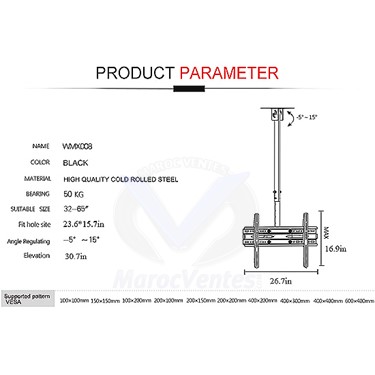 Support Plafond Plat ou Incliné pour Ecrans 32-65''