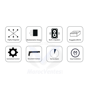 • Hautement intégré• Conception de modularisation• Haut-parleurs intégrés• PC OPS enfichable intégré• Contrôle centralisé• Caméra de documents intégrée• Économiser de l'espace• Entretien facileCaractéristiques