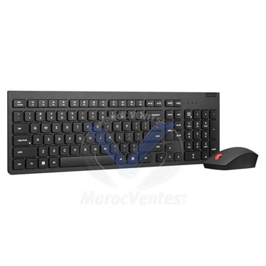 Ensemble clavier et souris sans fil Lenovo Essential Gen2 Noir – FrançaisAccélérez votre productivité avec l'ensemble clavier et souris sans fil Lenovo Essential Gen 2. Conçu pour les professionnels modernes, cet ensemble offre une connexion sans fil fiable à 2,4 GHz et utilise 65 % de plastique recyclé post-consommation, réduisant ainsi votre empreinte écologique. Le clavier extra-plat à 2,5 zones offre une expérience de frappe silencieuse haut de gamme, tandis que la souris ambidextre de taille standard assure un confort optimal. Avec des contrôles multimédia dédiés, un chiffrement AES-128 et une résolution de 1 600 PPP, vous bénéficiez d'une performance exceptionnelle à chaque utilisation.Présentation