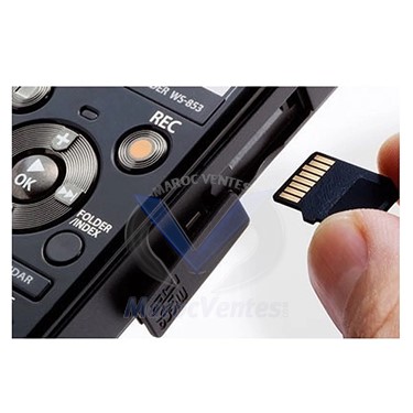 Olympus WS-853 : Enregistreur vocal numérique 8Go avec logiciel de reconnaissance vocaleL'Olympus WS-853 est un enregistreur vocal numérique d'une capacité de 8 Go, qui peut être augmentée grâce à son lecteur de carte microSD pouvant augmenter la capacité de mémoire jusqu'à 32 Go.Cet enregistreur numérique à USB rétractable permet d'enregistrer vos données directement à votre ordinateur. Le port USB sert également de recharge pour la batterie du dictaphone afin de vous simplifier le quotidien.Le dictaphone WS-853 est fourni avec un logiciel de reconnaissance vocale permettant une retranscription simple et rapide de vos enregistrements.L'enregistreur Olympus est équipé du mode automatique intelligent, cette fonction permet d'ajuster la sensibilité du dictaphone en fonction du niveau des voix et de la distance entre les personnes afin de proposer un volume égal.Cet enregistreur vocal comporte une fonction réduction de bruit pour une qualité du son optimum. De plus, son support intégré vient compléter cette fonction car cela permet d'éviter les sons provenant des supports sur lequel le microphone est posé.OLYMPUS WS-853