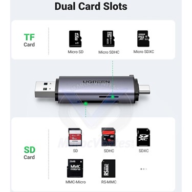 Lecteur de Carte SD Ugreen USB C USB 3.0 2 en 1 Adaptateur de Carte SD en Aluminium (50706)Accélérez vos transferts de données avec le Lecteur de Carte SD Ugreen USB C USB 3.0. Profitez d'une vitesse de transfert allant jusqu'à 5 Gbps, permettant de déplacer 1 Go de photos en seulement 5 secondes. Compatible avec une multitude d'appareils, cet adaptateur 2 en 1 prend en charge deux cartes simultanément, offrant une efficacité accrue. Sa conception en aluminium assure une dissipation thermique optimale et une durabilité exceptionnelle. Facile à utiliser grâce à la technologie Plug & Play, il est compatible avec divers systèmes d'exploitation, du Windows au MacOS en passant par Android. Simplifiez vos transferts de données avec cet adaptateur polyvalent.UGREEN Lecteur de Carte SD Micro SD USB C USB 3.0 2 en 1 Adaptateur