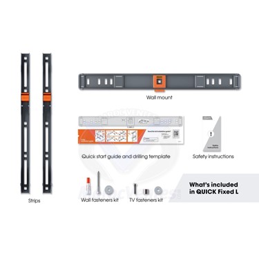 Le montage de votre téléviseur est trop compliqué ? Pas avec ce support mural TV fixe QUICK Fixed. Grâce au système exclusif EasyFIX™, vous pouvez fixer votre téléviseur au mur en trois étapes simples. En 20 minutes, vous serez assis confortablement devant votre téléviseur.Matériel de fixation et instructions inclus